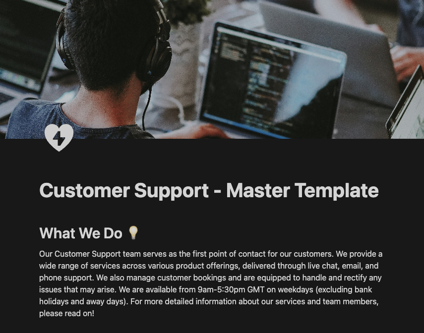 This template will help you empower your customer support team to be equipped with the latest information and knowledge from across the rest of the business. The business and the customer support team can quickly gain access to understanding: